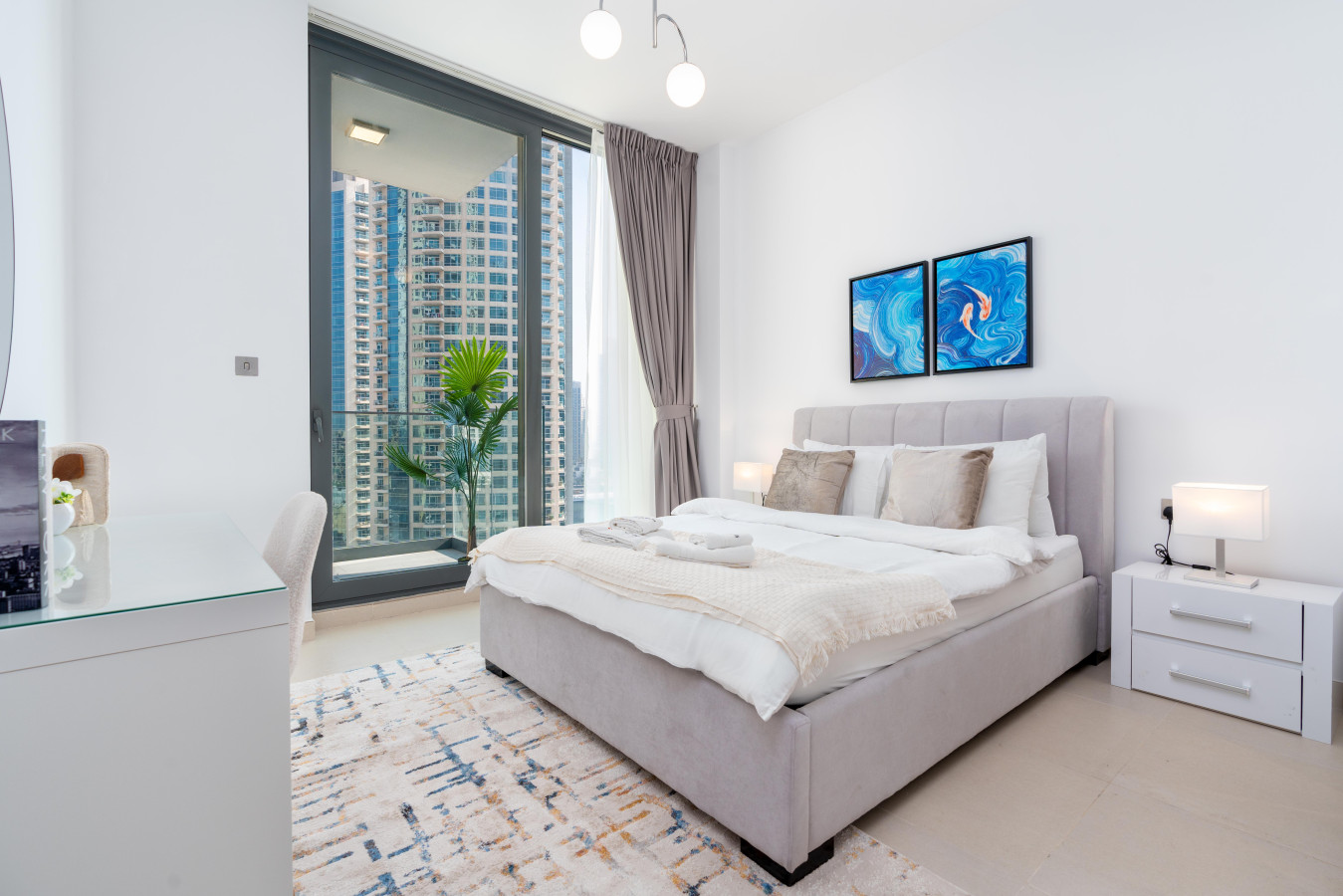 Wake up to breathtaking views of the Marina and enjoy the ultimate in convenience with Jumeirach Beach Residence just steps away. Our chic and stylish apartment features two plush queen-sized beds, a spacious living room , a fully equipped kitchen, overlooking the Marina.
