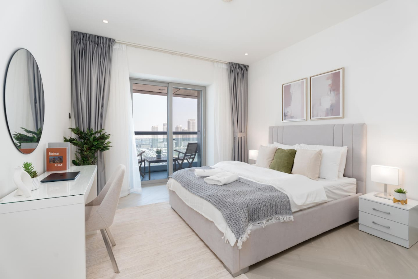 In a prime location in Dubai, this magnificent two-bedroom vacation home is the epitome of contemporary living. The interior of the house is exquisitely decorated, and the fancy furniture has a hint of esthetic which guaranties perfect stay on the days you wish to stay in.