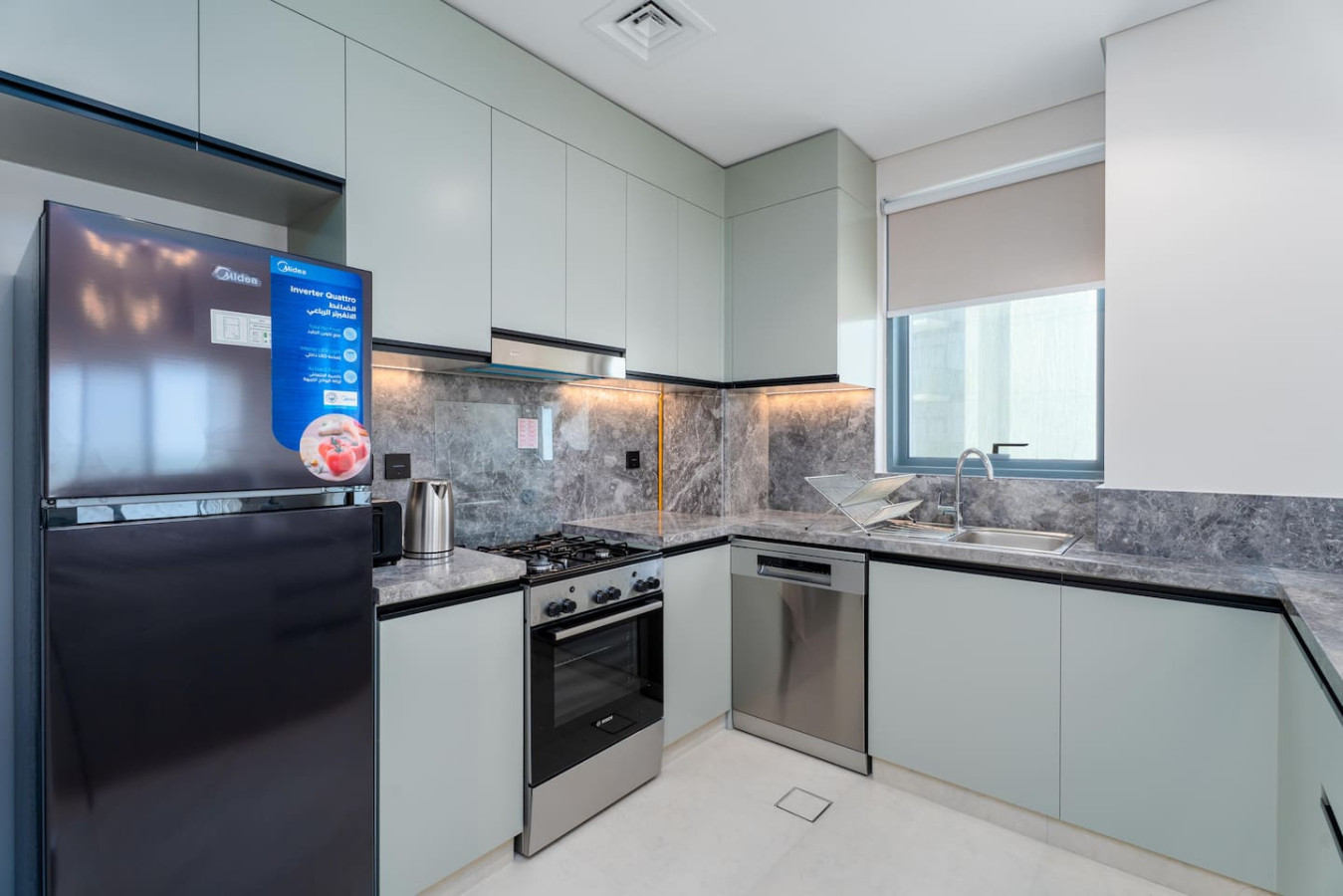 ✓ Open kitchen with full cookware and appliances