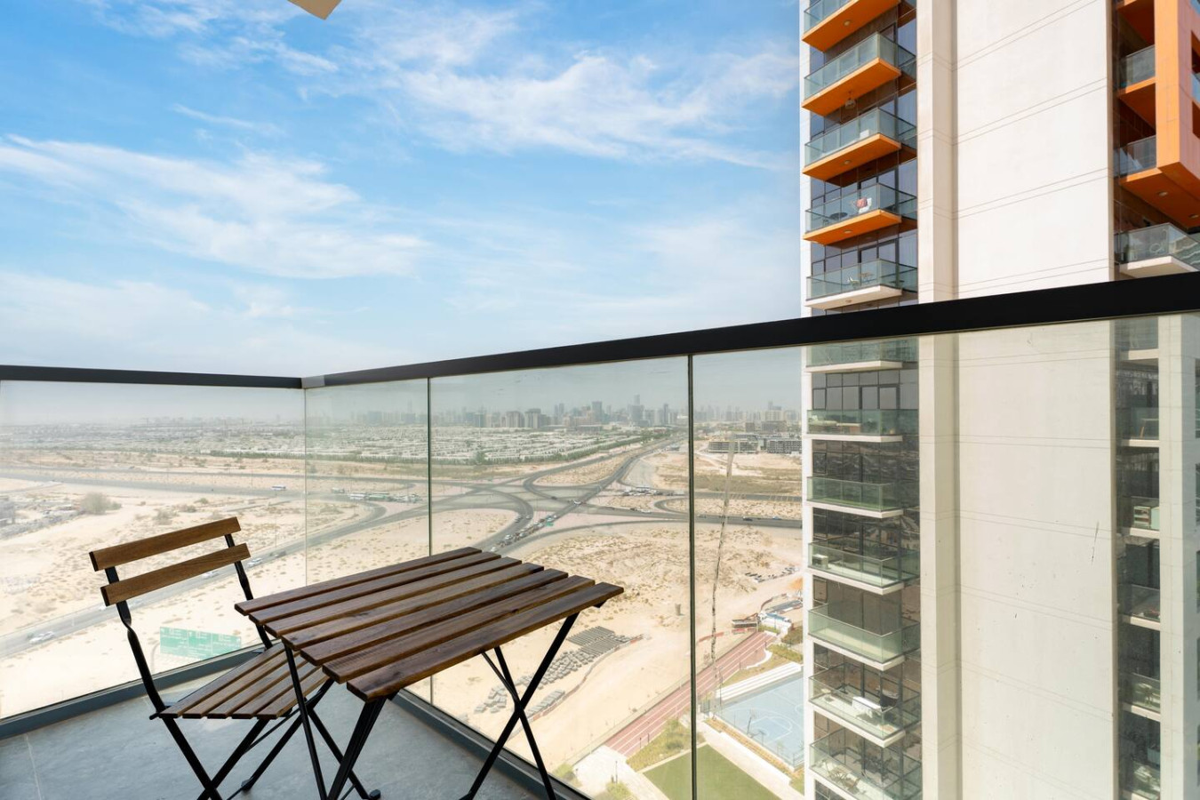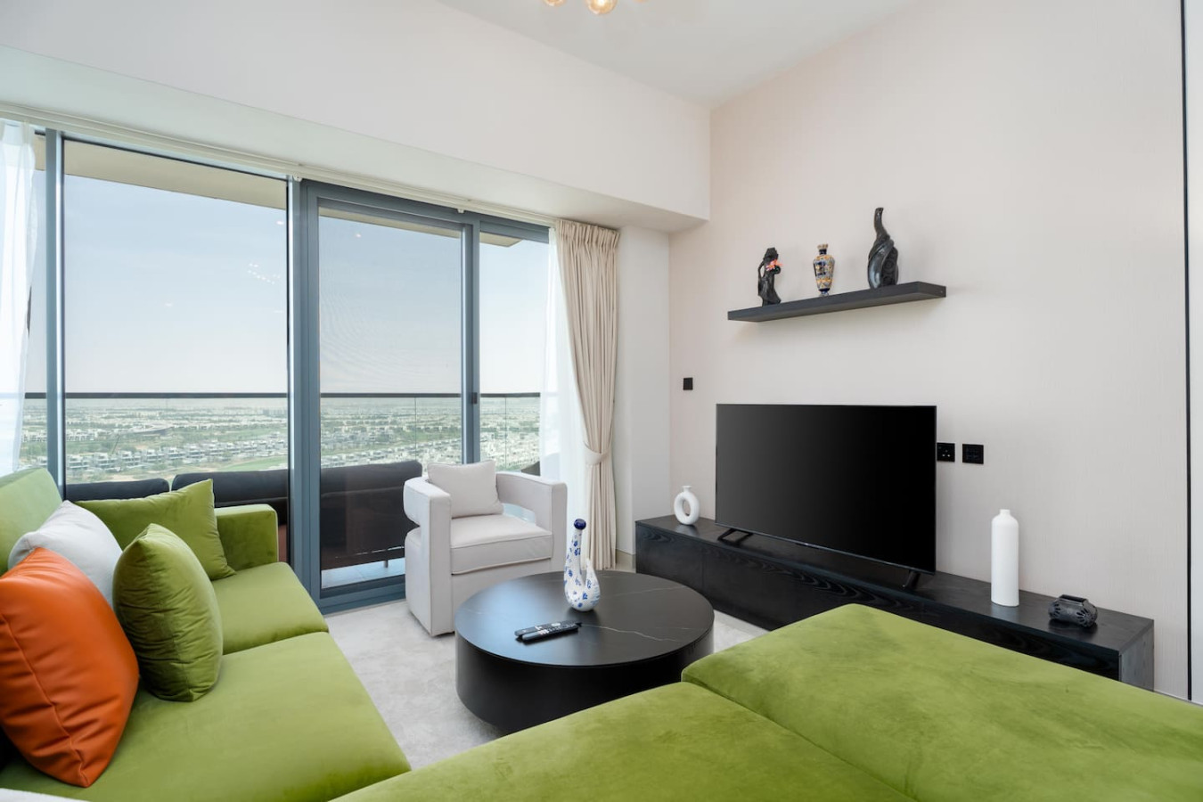 This elegant two-bedroom apartment in Damac Hills' Golf Gate offers modern comfort with stunning golf course views. Featuring a fully equipped kitchen, cozy dining area, stylish living room with smart TV, two queen-size bedrooms, and a furnished balcony overlooking the greenery. Perfect for those seeking a peaceful yet luxurious stay in one of Dubai’s most serene communities.