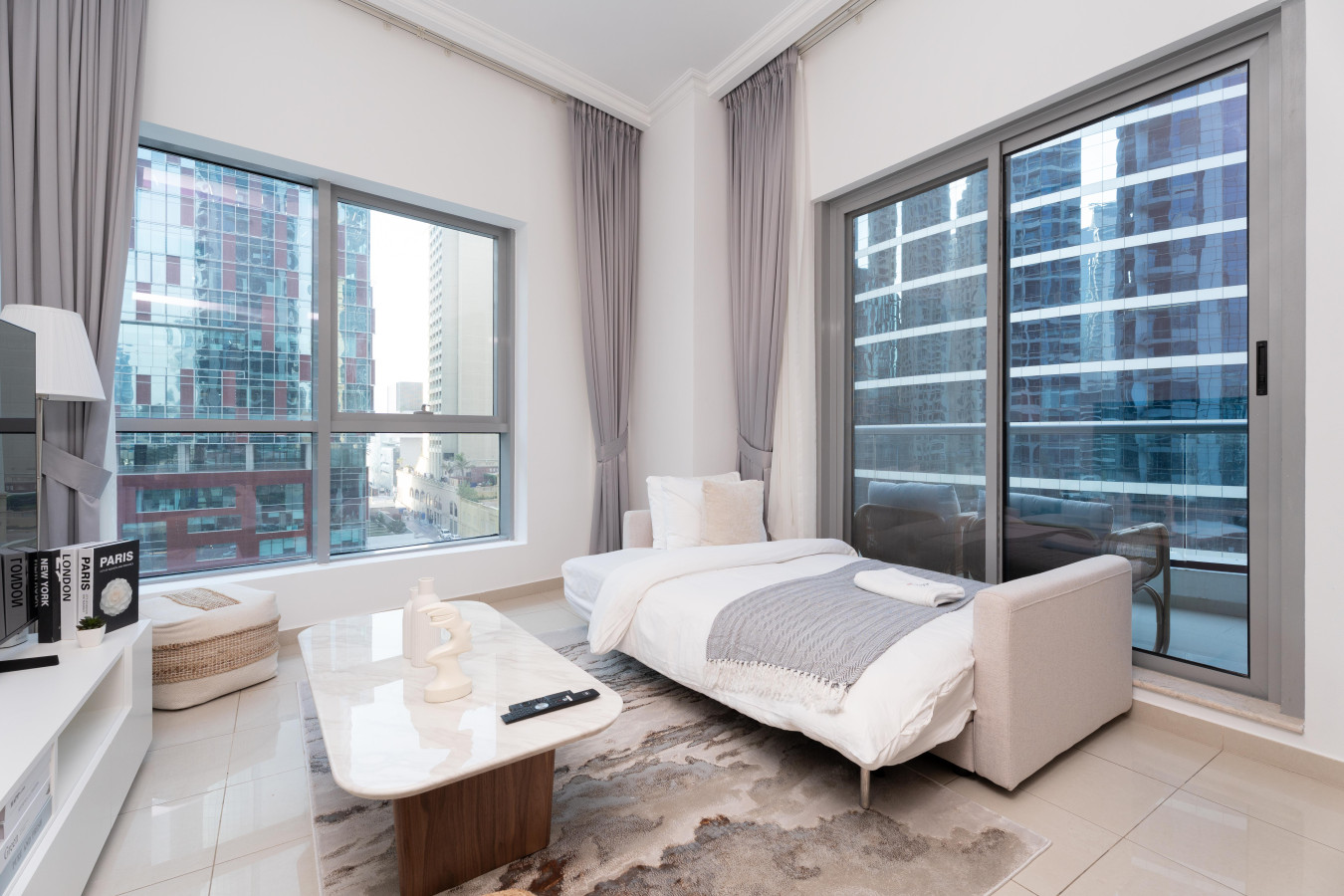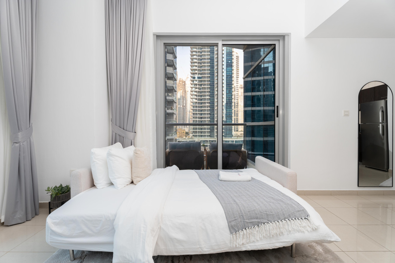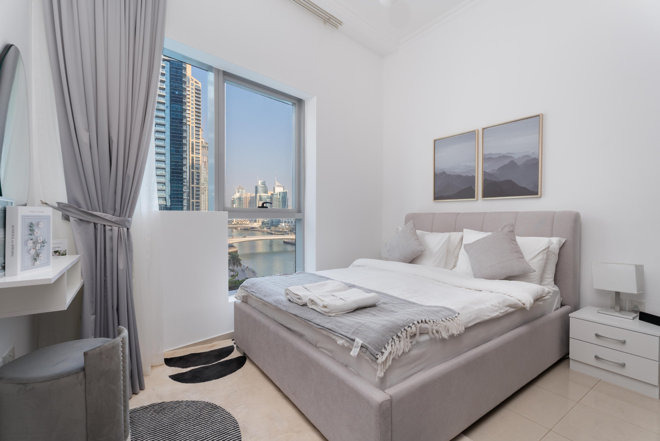 Wake up to breathtaking views of the Marina. Our chic and stylish apartment features a plush queen-size bed, a spacious living room, a fully equipped kitchen, overlooking the Marina.