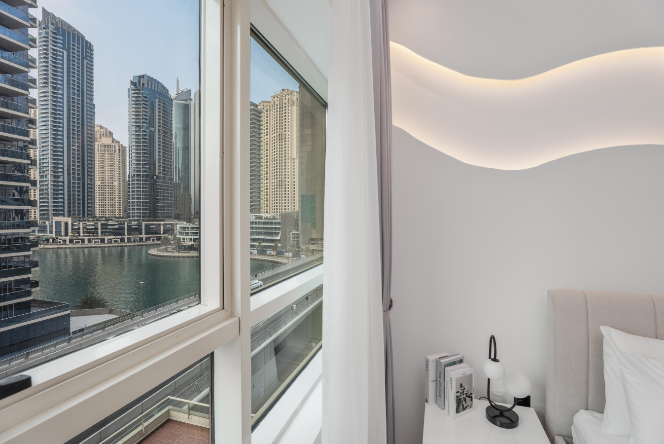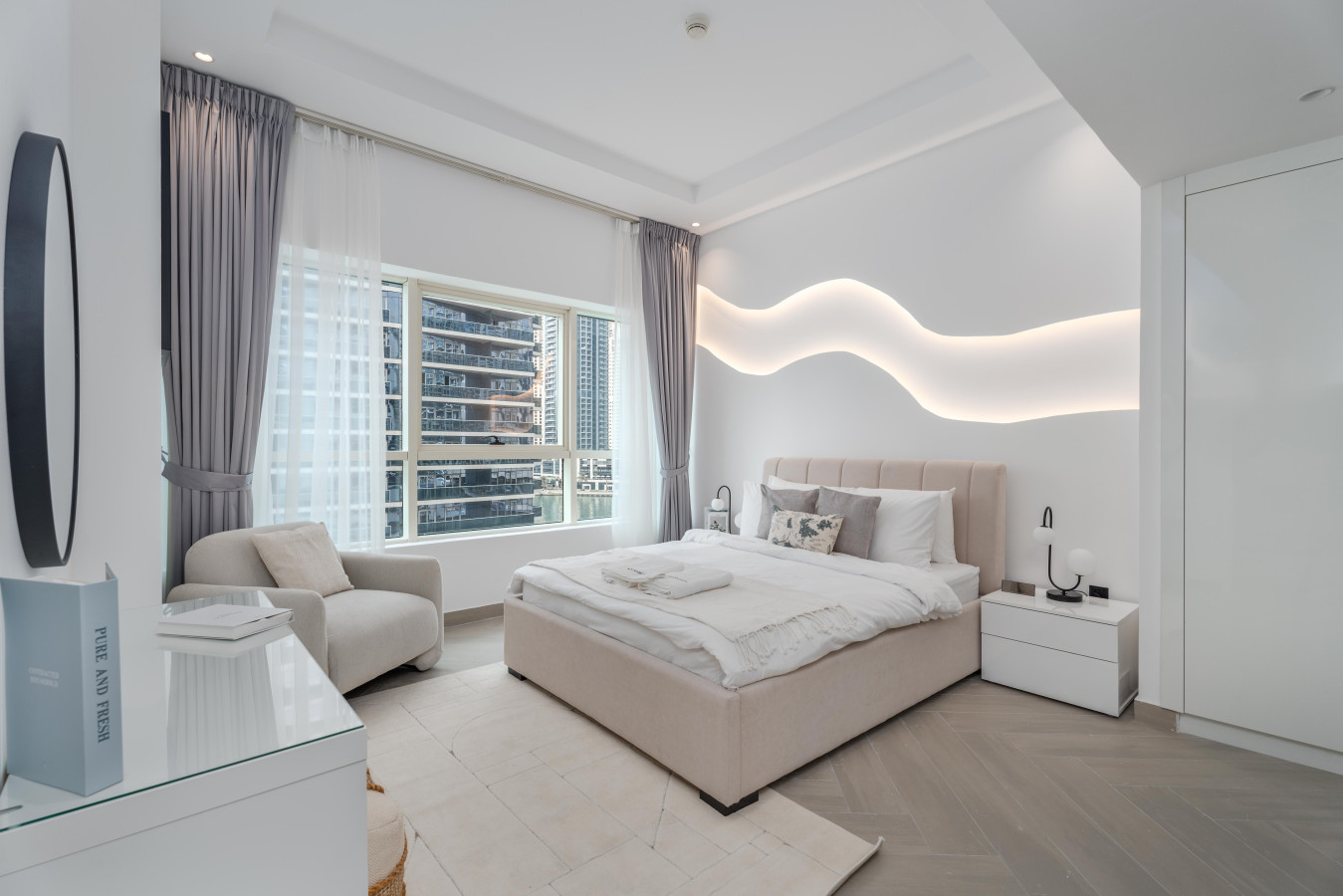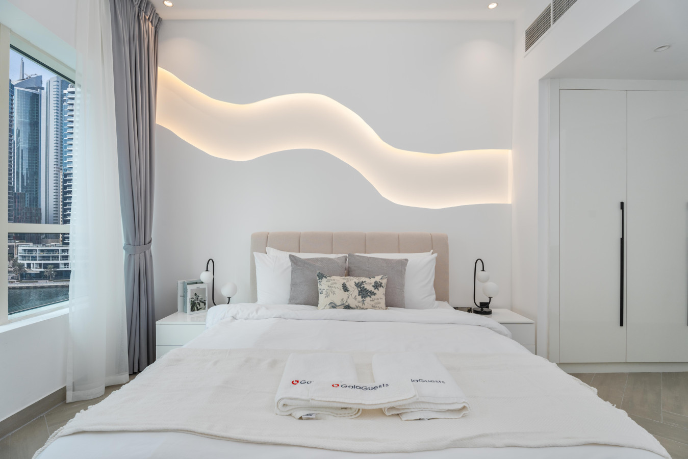 Wake up to breathtaking views of the Marina. Our chic and stylish apartment features a plush queen-size bed, a spacious living room, a fully equipped kitchen, overlooking the Marina.
