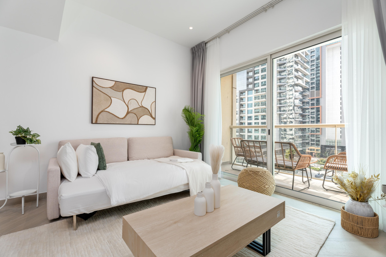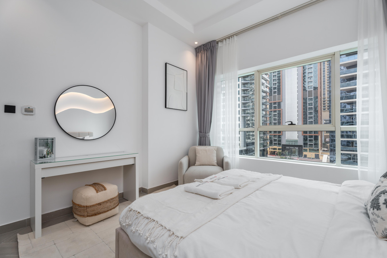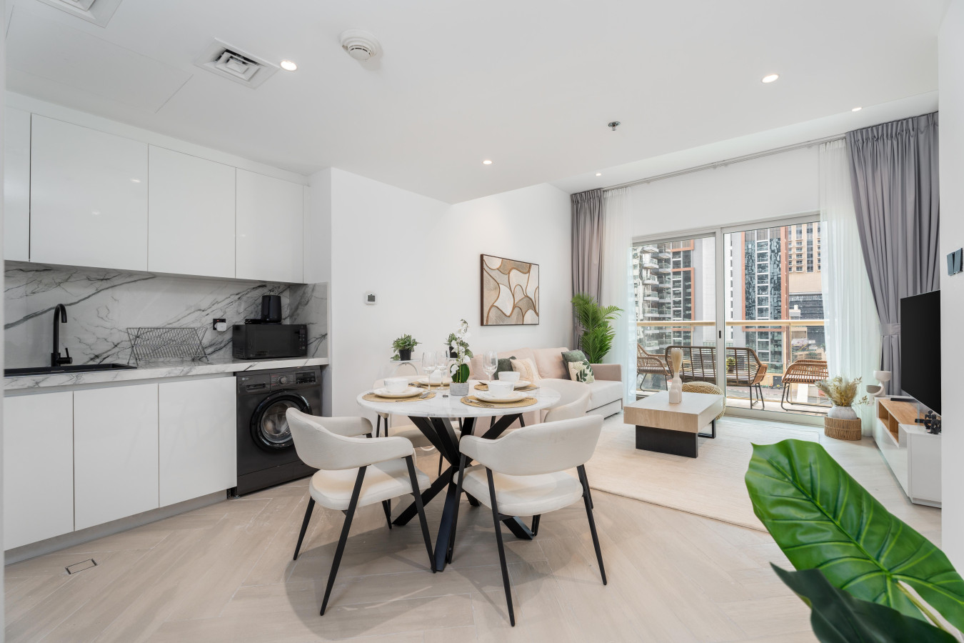 Wake up to breathtaking views of the Marina. Our chic and stylish apartment features a plush queen-size bed, a spacious living room, a fully equipped kitchen, overlooking the Marina.