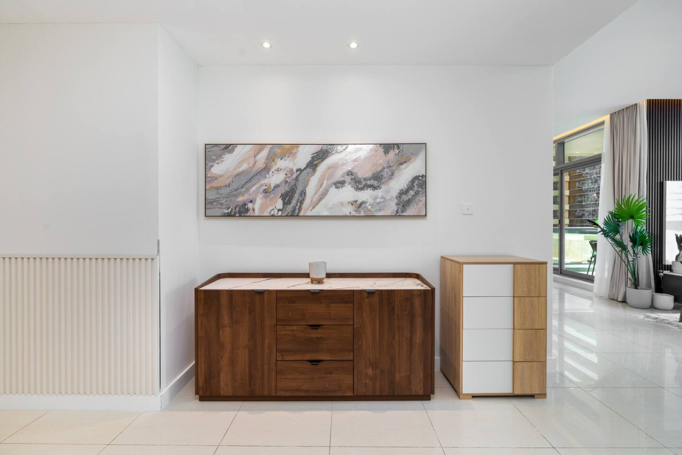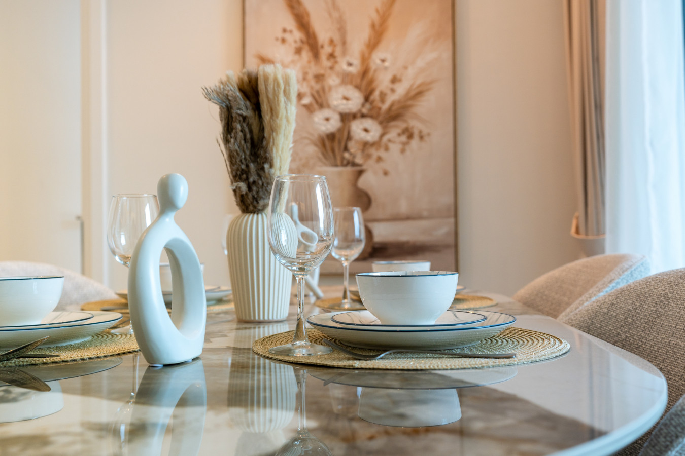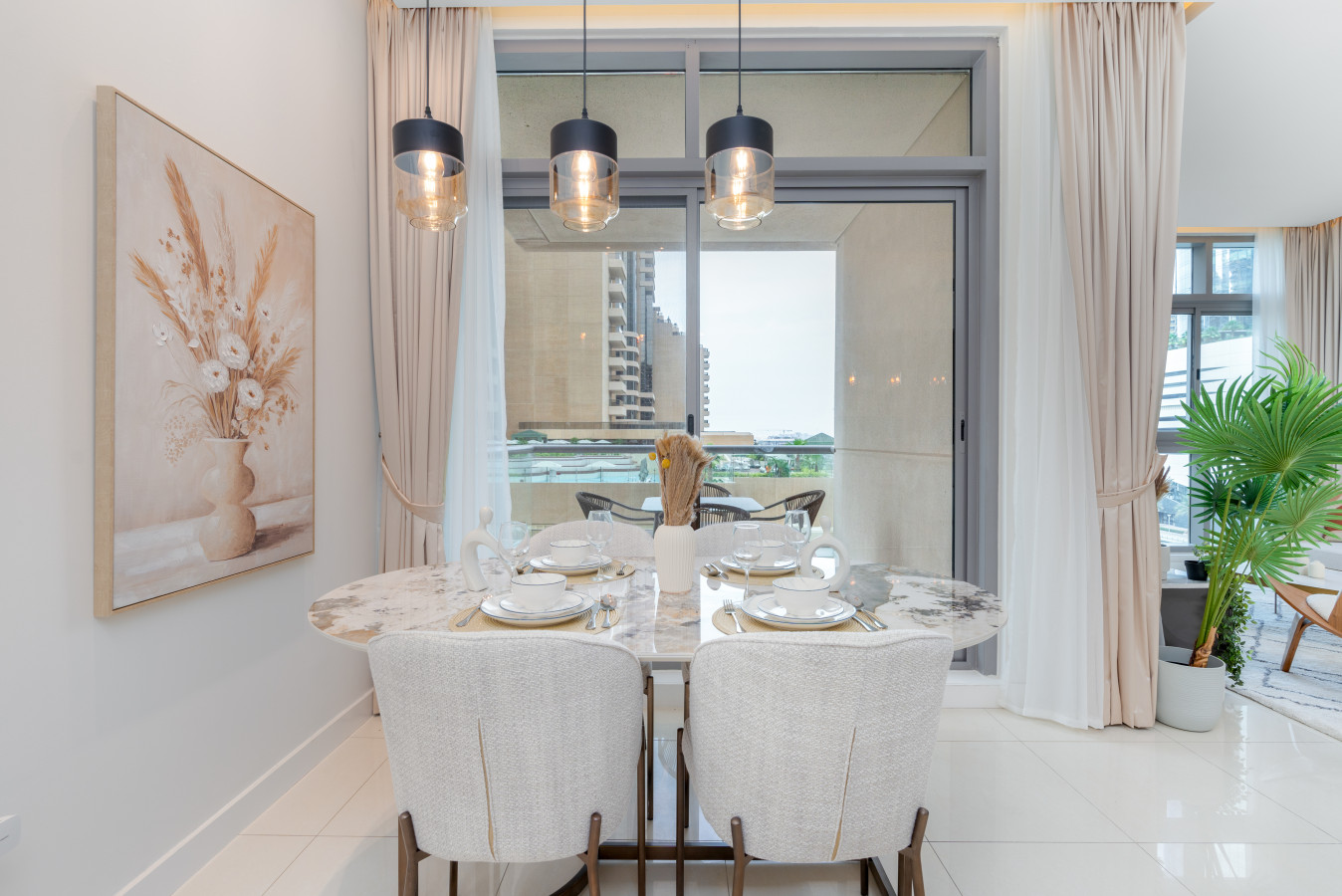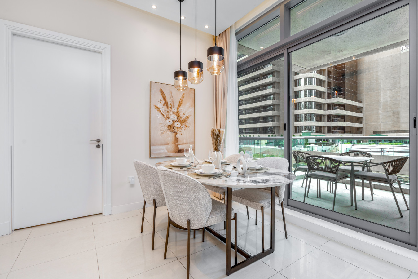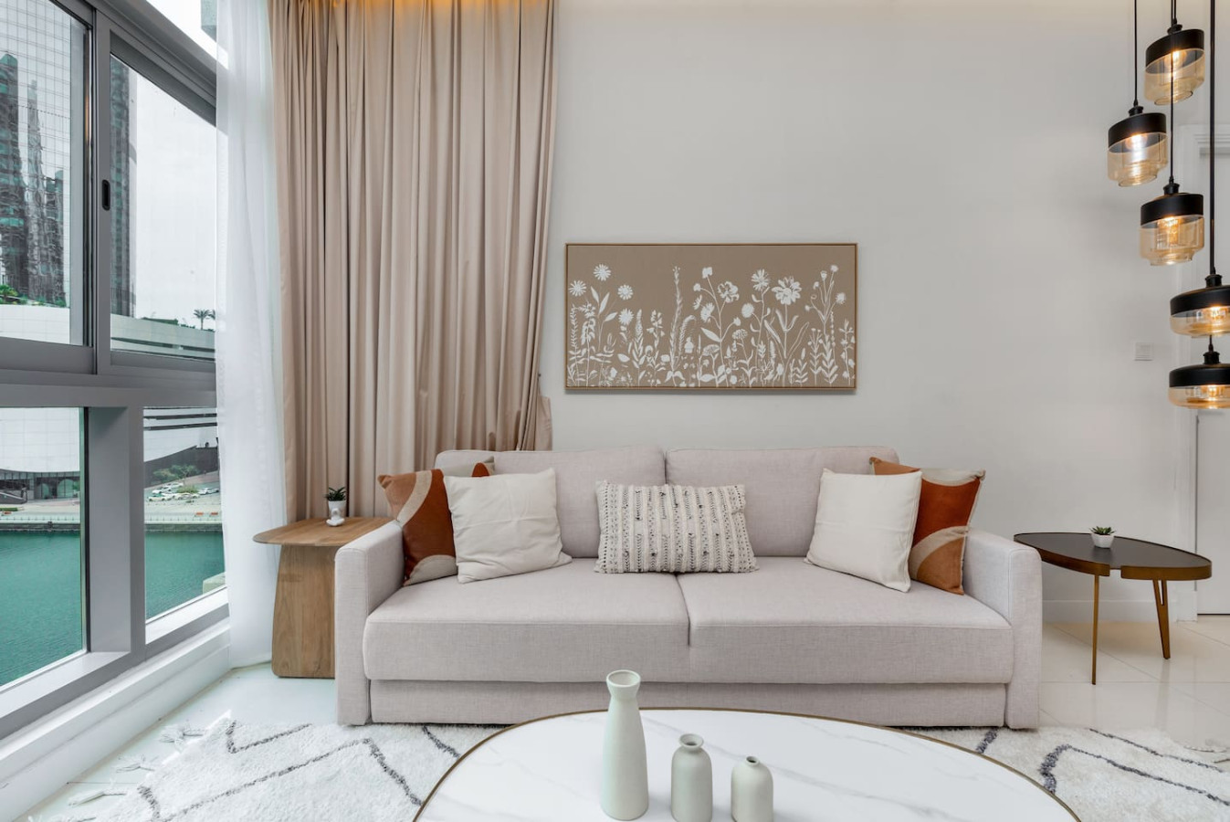 Thoughtfully designed with soothing tones and modern furnishings, the apartment offers beautiful views of the Marina waters and a bright, welcoming atmosphere throughout the space.